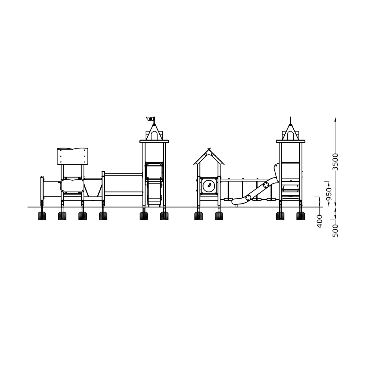 Zróżnicowany elementowo z zestaw dla przedszkolaków. Oprócz atrakcji na zjeżdżalni , ćwiczy zmysł równowagi .